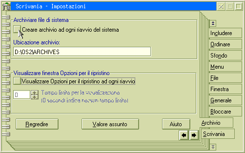 Con la versione 3, OS/2 ci dà la possibilità di salvare fino a 3 configurazioni del sistema selezionando dal blocco impostazioni della Scrivania Creare archivio ad ogni riavvio del sistema.