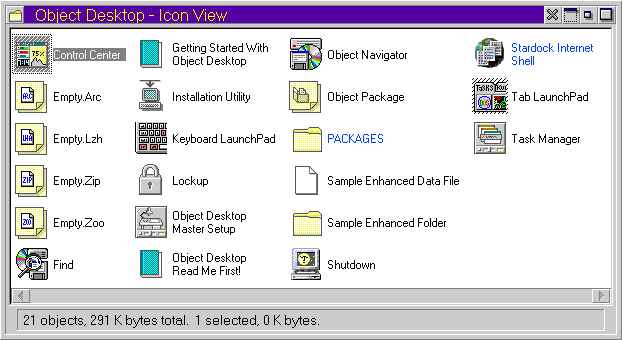 Aprendola vengono mostrati i files contenuti nel file ZIPpato, ed il processo di decompressione avviene in modo del tutto trasparente per l'utente. La ditta che produce Object Desktop, la statunitense Stardock Systems, ha recentemente cominciato la distribuzione della release 1.5 del programma, introducendo nuove feature ed eliminando alcuni problemi presenti nella versione precedente.
