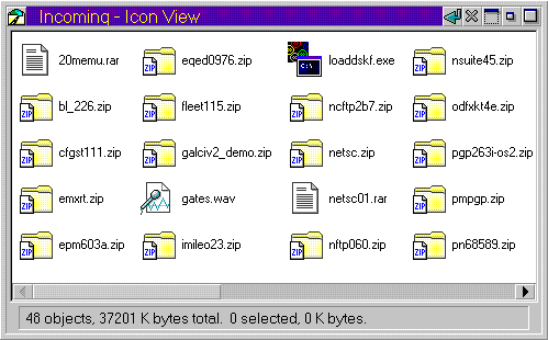 Gestione dei files compressi: come già accennato, con Object Desktop i files compressi (con ZIP, ZOO, ARC e LHA) si comportano come delle normalissime cartelle. Il contenuto di un file compresso può essere per esempio letto, decompresso in una directory o in una cartella, spostato, modificato. Inoltre, per creare un nuovo archivio è sufficiente usare le apposite maschere che vengono aggiunte alla cartella "Maschere" di OS/2, proprio come se si trattasse di un oggetto qualsiasi.