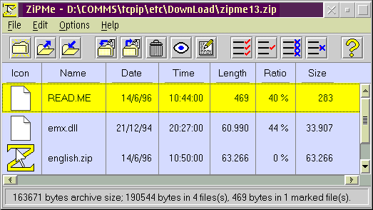 ZipMe è un altra interfaccia grafica per gestire più comodamente i file compressi di costo piuttosto economico: per registrarsi basta infatti mandare una cartolina illustrata all'autore.