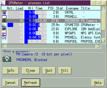 È inoltre possibile richiamare una finestra in cui sono elencati i processi attivi che mostra anche quei processi che non vengono mostrati nell'Elenco finestre. Nella finestra vengono mostrati l'icona del programma, il carico sulla CPU, il tempo totale di occupazione della CPU da parte di ogni processo, il numero di identità del processo, il nome dell'eseguibile e il titolo che eventualmente verrebbe mostrato nellElenco finestre.