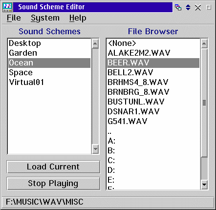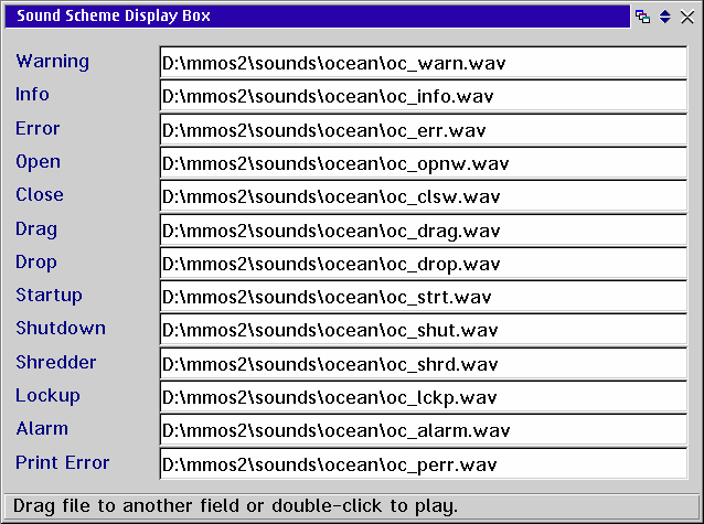 Finalmente, dopo tanta attesa, anche Warp 4.0 (aka Merlin) si è dato una scossa verso la multimedialità; fra le tante novità IBM ha espanso anche lo scarno menù dei suoni di sistema con quelli che ha chiamato Sound Schemes. Un'idea utilissima per chi si stanca frequentemente delle impostazioni 'sonore' della propria WPS: ora basta un click e tutti gli eventi vengono cambiati in un attimo. Quando però anche i quattro schemi messi a disposizione (Desktop, Garden, Ocean e Space) iniziano a stancarci, allora cominciano i problemi: in altre parole IBM si è dimenticata di fornirci un'editor per modificare, cancellare o aggiungere schemi di nostro piacimento. Superfluo dire che i suoni possono essere cambiati individualmente, ma che noia!