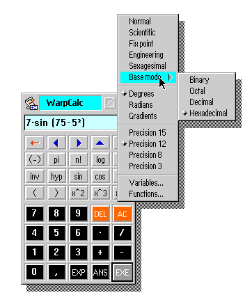 Warpcalc è un calcolatore scientifico che consiste in due applicazioni distinte: una PM e l'altra da riga di comando.