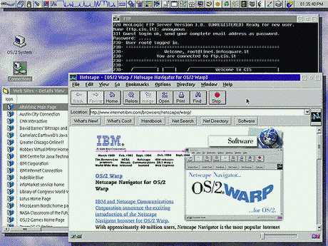 OS/2 Warp 4 dispone del browser per la rete più famoso ed utilizzato al mondo, - Netscape Navigator - e della tecnologia ad oggetti per l'accesso ad InterNet. I siti più frequentemente visitati si possono porre sulla scrivania come oggetti. Il browser dispone della tecnologia Java - a sua volta integrato nel sistema operativo - per lanciare in modo nativo gli applet Java direttamente sulla scrivania. L'interazione tra OS/2 Warp e i server FTP è resa più semplice da una cartella presente sulla scrivania: aprendola ci si collega e lo scambio dei file avviene da e per la cartella, sulla scrivania, in modo trasparente.