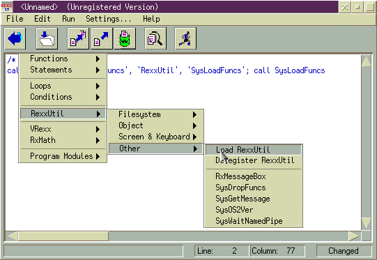 Ottimo è soprattutto l'uso del menù di popup, richiamabile con il tasto destro del mouse, da questo possiamo avere un menù con tutte le funzioni Rexx utilizzabili. Una volta scelta la funzione avremo un template di tale funzione da incollare nel nostro testo. Com questo metodo abbiamo sotto mano non solo le funzioni di base del Rexx, ma possiamo anche costruire ed utilizzare in questo modo porzioni di codice o routine personalizzate per poi usarle in tutti i nostri programmi.