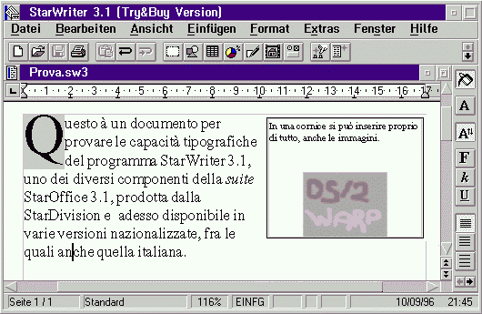 All'avvio il programma è un pò lento, ma una volta partito non si comporta male (a parte quando da StarCalc ho provato a leggere un file StarWriter) e nel complesso permette un lavoro rilassato. Anche per quel che riguarda la stabilità non ci sono grossi problemi e, comunque, non crasha il sistema. Si dice nell'ambiente che anche la StarDivision seguirà la nuova moda di rilasciare dei fix per garantire un buon supporto del prodotto: questo sembra ormai l'unico modo per ovviare a quei bachi cui nessun p gramma può più rinunciare se vuole mantenersi attuale e competitivo sul mercato, anche se questo può risultare un pò penalizzante nei confronti di chi non ha accesso ad internet; a questi, almeno per il passaggio da 3.0 a 3.1, StarDivision ha riservato un CD di aggiornamento ottenibile con una spesa minima.