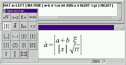 L'editor di formule non è ricchissimo, nè il risultato è ai livelli del TeX, ma sicuramente è un accessorio che ancora manca a diversi wordprocessor. Per scrivere le formule si possono effettuare le selezioni con il mouse ma, se lo si usa spesso, può essere conveniente scrivere direttamente i comandi nell'apposita finestra. Il risultato, oltre che inserito nei documenti StarOffice, può anche essere salvato separatamente.