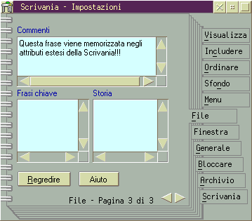 Come precedentemente accennato è possibile interagire con gli attributi estesi dei file tramite il blocco delle impostazioni dei file stessi. Tramite essi possiamo accedere ad .ASSOCTABLE (Associazione), .TYPE (Tipo), .ICON (Icona) e tramite la terza pagina del separatore File a .COMMENTS, .HISTORY e .KEYPHRASES.