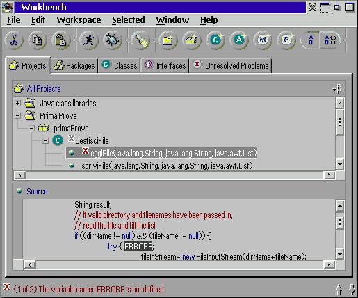 L'ambiente effettua ad ogni salvataggio del codice sorgente una compilazione incrementale del